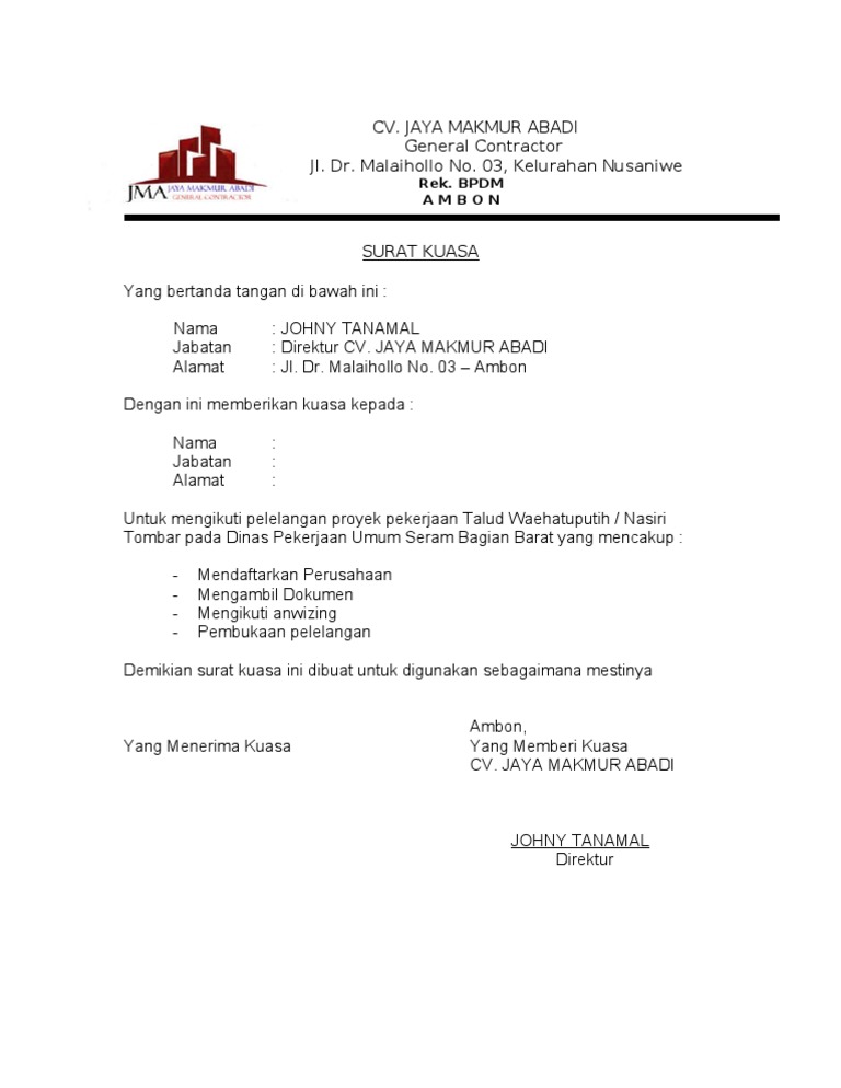 Contoh surat kuasa berbagai keperluan yang baik dan benar. Contoh surat kuasa pengacara untuk kepengurusan hukum contoh surat kuasa pengambilan uang di bank bni, mandiri, bca, bri Jangan sampai dokumenmu ditolak karena salah buat! Kelemahan dari surat kuasa tanah adalah tidak adanya batas waktu tertentu kepada orang yang ditunjuk dengan tujuan mengakhiri masa pemberian. Berikut ini adalah contoh lengkap surat kuasa dan cara membuat surat kuasa dengan baik dan benar yang dapat digunakan di berbagai keperluan.
